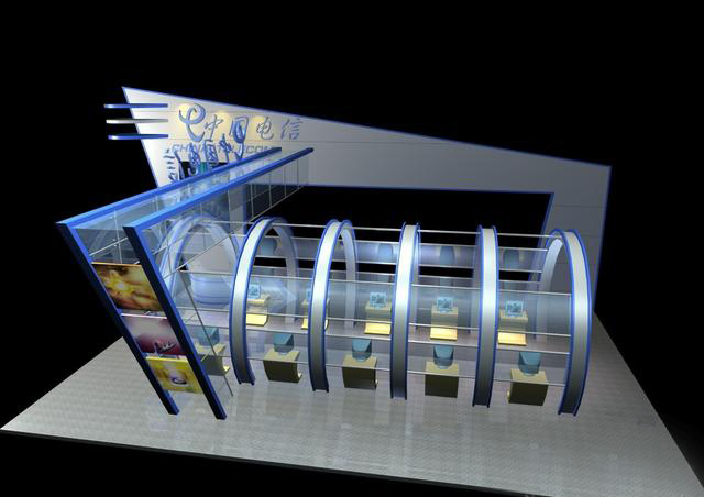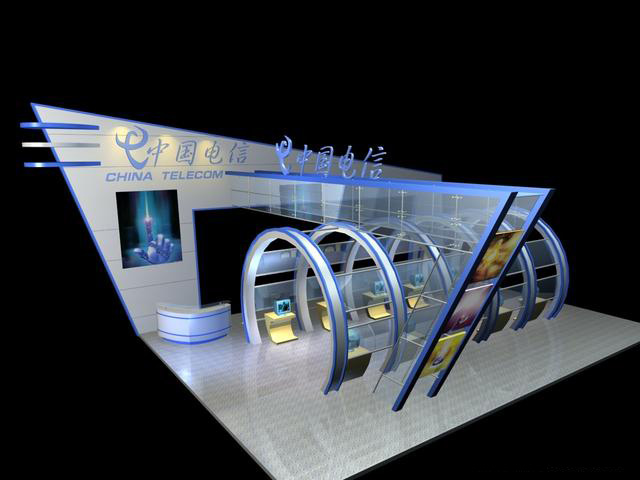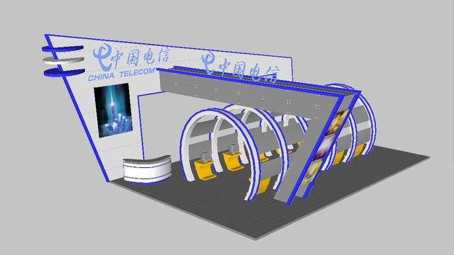 電信展廳全套草圖大師SU模型,含3dmax模型CAD圖渲染圖PSD效果圖,非常完整的一套展廳方案